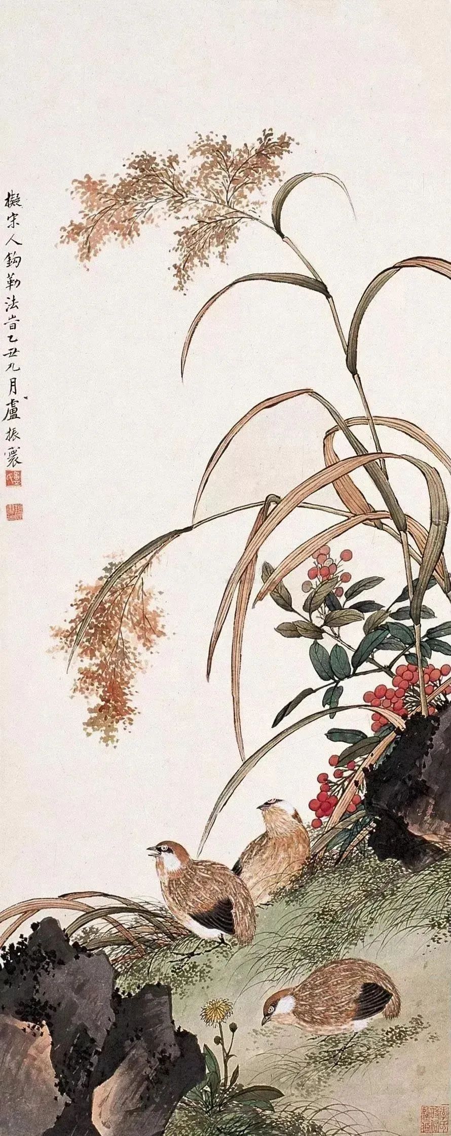 自宋代开始,鹌鹑便登上了艺术的殿堂。在宋人的花鸟画中,鹌鹑的形象多次出现,并形成了明确的寓意。此后,鹌鹑逐渐成为历代画家笔下的常见题材。